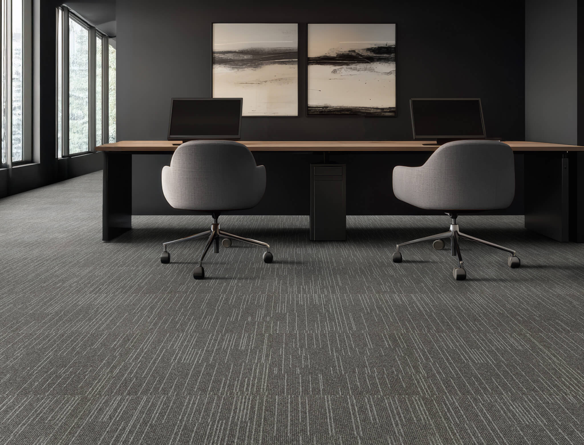 Capturing the power and elegance of a dramatic rain shower, Cloudburst features a contemporary, random linear pattern. This modern design complements a variety of interior styles, offering the drama of a storm without the wet weather.