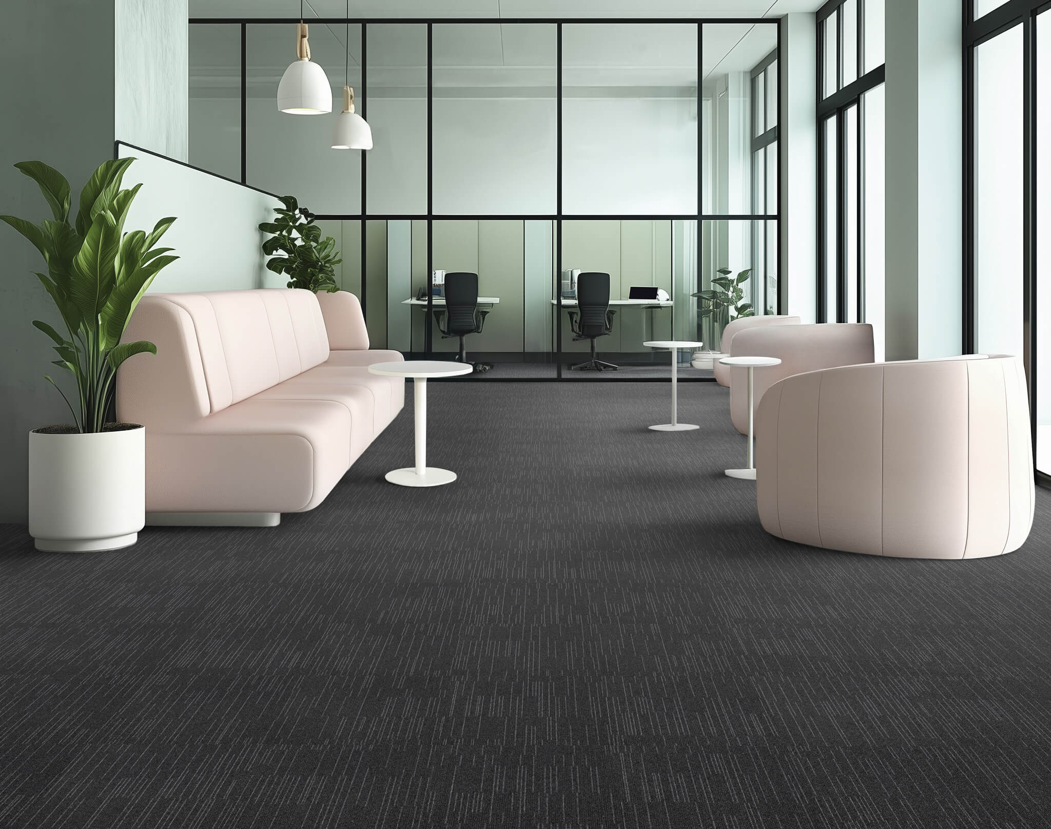Performance and aesthetics are equally balanced with this collection, designed for high traffic areas that require long-lasting wear and tear resistance. They also benefit from excellent acoustic properties that allow Cloudburst to seamlessly blend into work environments.